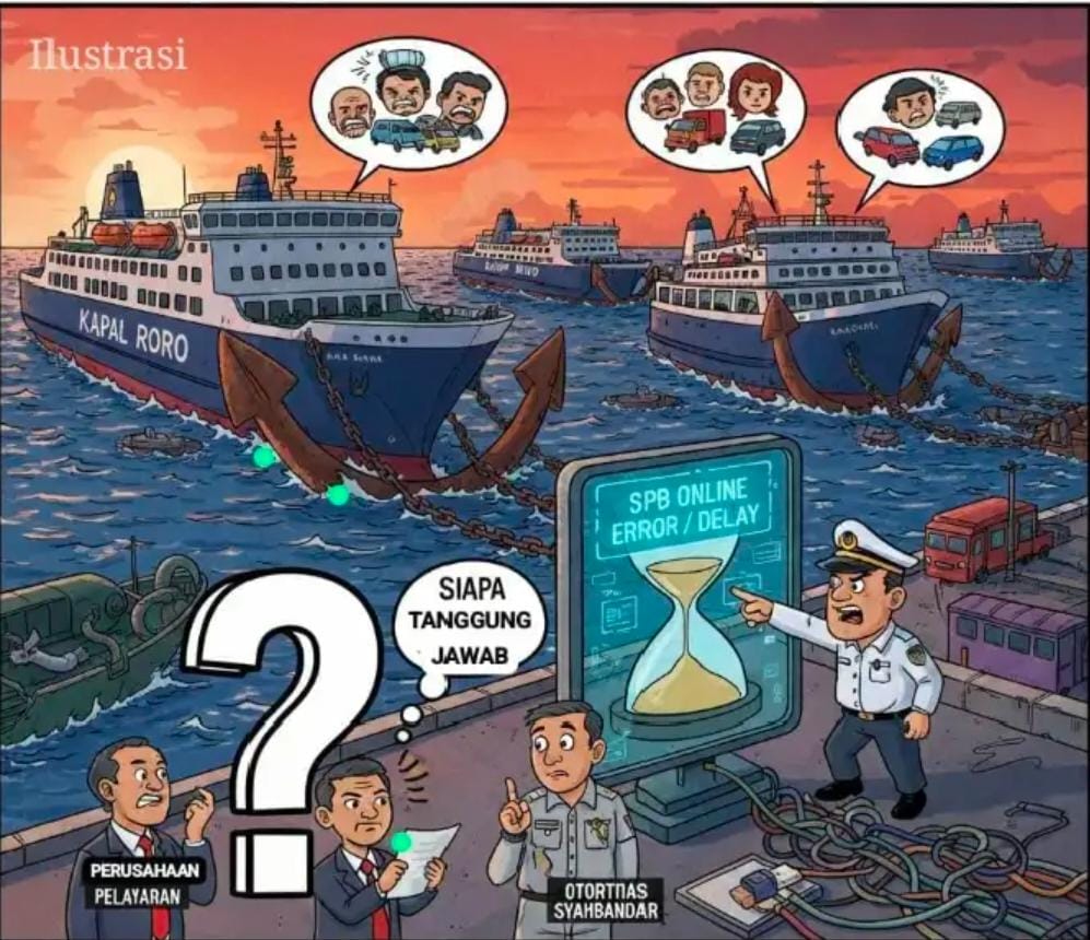 Keterlambatan tersebut diduga berkaitan dengan penerbitan Surat Persetujuan Berlayar (SPB) yang kini sepenuhnya dilakukan secara daring. Sistem yang diklaim sebagai bagian dari digitalisasi pelayanan justru dinilai memperlambat operasional kapal.