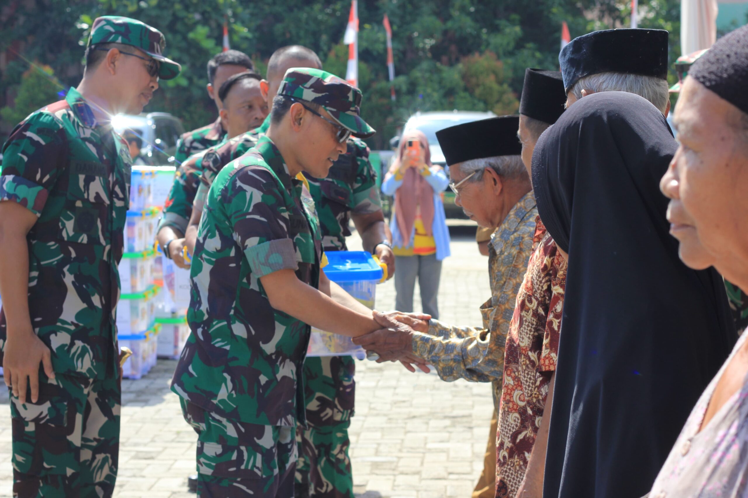 Sebelum melakukan penilaian ke beberapa titik lokasi TMMD, Brigadir Jenderal TNI, Gunawan, berserta Tim Wasev, melakukan pembagian 100 sembako kepada masyarakat sekitar di lapangan upacara Kantor Desa Karangmukti, di lanjutkan dengan sepeda motor ke beberapa titik lokasi pembangunan TMMD, di antaranya pembangunan Saluran Air di Jalan Lingkungan Gang H.Sugianto dan Ahmad, pembangunan Posyandu, MCK (Mandi Cuci Kakus), pembangunan RUTILAHU, Terakhir peninjauan pembangunan Turap, (Tembok Penahan Tanah).