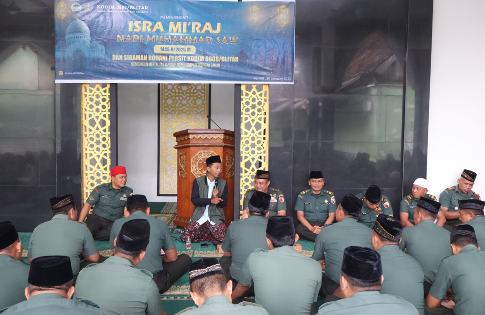 Hallonusantara.com || BLITAR – Dalam rangka memperingati Isra Mi’raj Nabi Muhammad SAW tahun 1446 H/2025 M, Kodim 0808/Blitar menggelar acara yang digabungkan dengan siraman rohani untuk prajurit TNI dan anggota Persit. Acara yang bertema “Membangun Mentalitas Tangguh Menghadapi Percepatan Zaman” ini diadakan di Masjid Al Ikhlas, Kodim 0808/Blitar, Jl. A. Yani, Kelurahan/Kecamatan Kepanjenkidul, Kota Blitar, pada Kamis (30/1/2025).