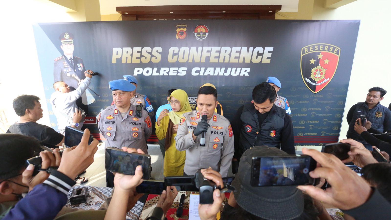 “Korbannya adalah seorang perempuan atas nama Saudari Geyflin Trise yang berprofesi sebagai driver taxi online, sedangkan tersangka yang berhasil kami amankan ada 2 orang yang berinisial Saudari NA dan Saudari NPD (17) yang masih dibawah umur, untuk saat ini tersangka NPD tidak kami tampilkan karena yang bersangkutan masih dibawah umur.” ucap Kapolres Cianjur saat memimpin konferensi pers di Mapolres Cianjur, Jumat (21/07/2023).