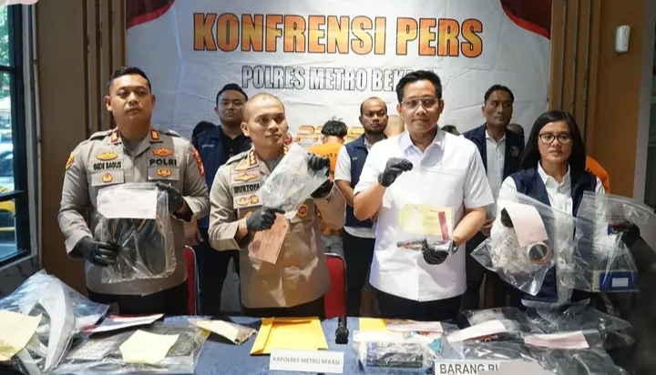 Hallonusantara.com || KABUPATEN BEKASI – Polres Metro Bekasi gelar press realese mengungkap kasus pencurian dengan kekerasan di lobi utama Polres Metro Bekasi. Kamis (31/7/2025).