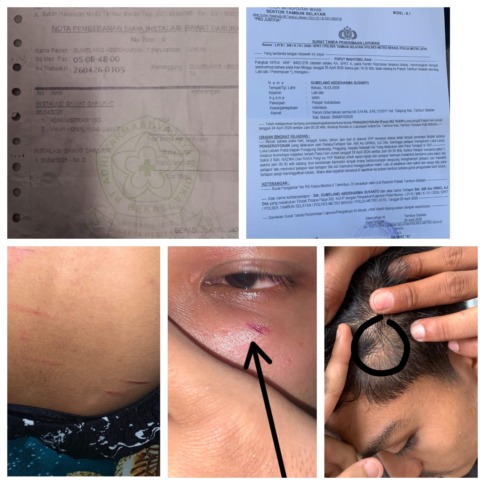 “Peristiwa ini sudah kami laporkan secara resmi ke pihak kepolisian dengan nomor LP/B/349/K/IV/2026/SPKT/Polsek Tambun Selatan/Polres Metro Bekasi/Polda Metro Jaya,” ujar AL.
