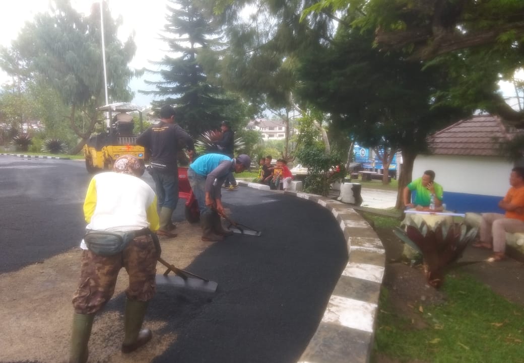 Halaman Polsek Pacet Kini Tertata Rapi Usai Pengaspalan Oleh Pemkab Cianjur