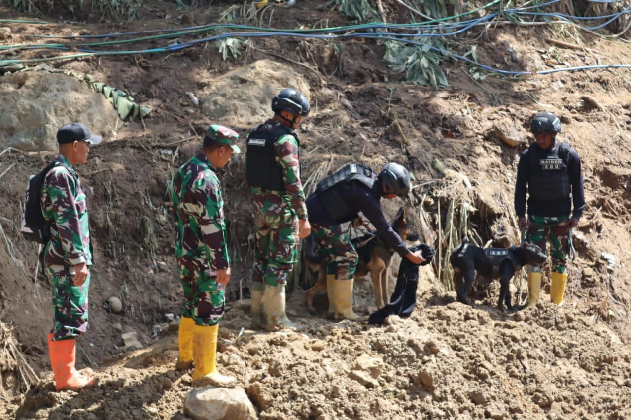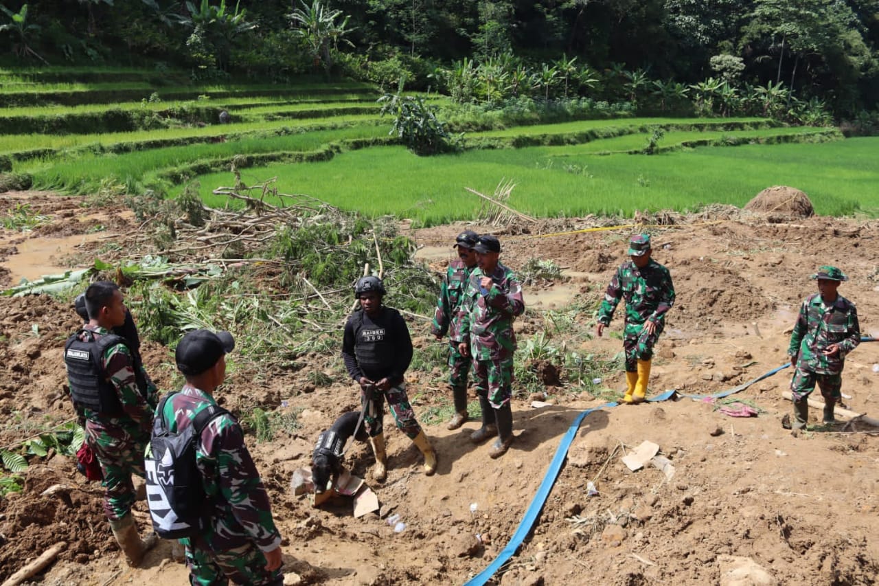 Hallonusantara.com || GARUT – Tim K9 Yonif Raider 300/Bjw Kodam III/Siliwangi menemukam jenazah korban longsor di Kampung Lembur Tengah Rt.03 Rw.09 Desa. Sukanagara kec. Pandey Kab. Garut pada hari senin jam 14.35 WIB,(10/07/2023).