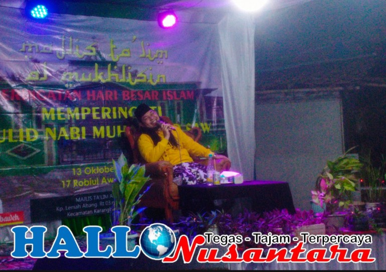 Hallonusantara.com || Bekasi – Majlis Ta’lim Al-Mukhlisin yang berlokasi di Kampung Lemahabang, RT.003/005, Desa Karangmukti, Kecamatan Karangbahagia, Kabupaten Bekasi, menggelar peringatan Maulid Nabi Muhammad Shalallahu alaihi wassalam pada Senin (07/10/2024). Kegiatan ini diadakan sebagai bentuk bukti cinta dan penghormatan kepada Rasulullah SAW serta sebagai momen untuk mempererat tali silaturahmi di antara para jamaah.