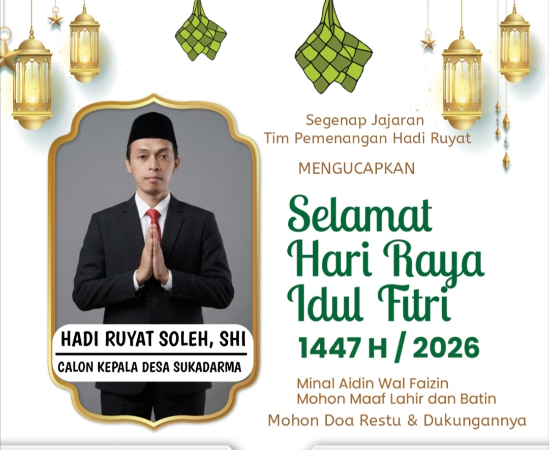 hallonusantara.com || Kabupaten Bekasi – Menyambut datangnya Hari Raya Idul Fitri 1447 Hijriah, Bakal Calon Kepala Desa Sukadarma , Kecamatan Sukatani, Kabupaten Bekasi, Hadi Ruyat Soleh. Shi, menyampaikan ucapan selamat sekaligus pesan mendalam bagi seluruh Masyarakat Desa Sukadarma, Senin (16/3/2026).